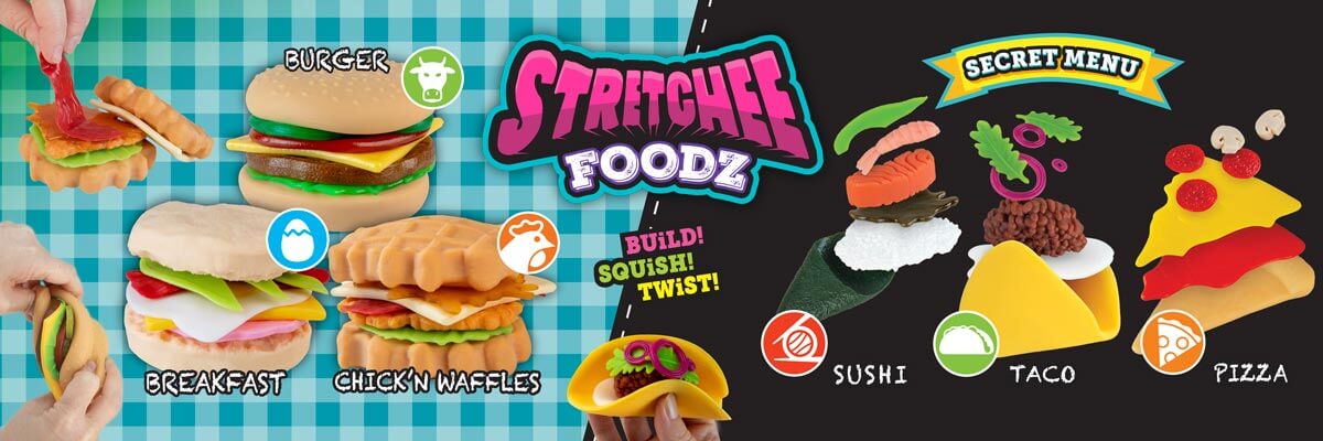 This ASMR inducing, viral toy provides the fun of crafting meals without the mess of real food! Stretchee Foodz toys come packed with vibrant, stretchy ingredients that will have you stacking and swapping toppings all day. These toys are fun to pull, peel, stretch and twist to your heart's content! Mix and match all the different ingredients to come up with our Secret Menu items or create your own!