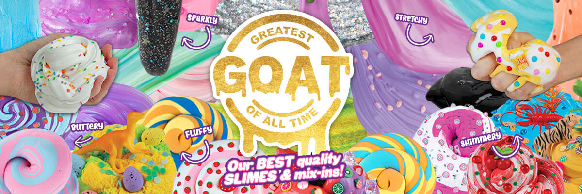 Our BEST slimis, FAN FAV mix-ins and PREMIUM scents combine to make the Greatest Of All Time Slimi collection! We’ve carefully curated the selection to impress all compound connoisseurs. Squishing, squeezing, folding, and kneading GOAT Slimi scented slimes is fun for everyone! Kids and adults alike will love their realistic scents and how fun they are to play with, and their stress relieving qualities make them fantastic for fidget and sensory use. One touch and you’ll know why we’re the G.O.A.T!